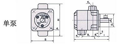 注:1、性能參數(shù)均按JB/J020105-88條件額定工況下測(cè)定。 2、雙泵中積壓?jiǎn)伪脤K僖郧氨妙~定轉(zhuǎn)速為準(zhǔn)。功率為二個(gè)單泵功率之和。 四、外形尺寸