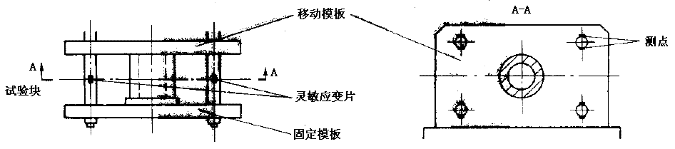 6.3.2 檢測方法 用秒表或其他更精確的記時裝置記錄塑化全行程1/4處的塑化時間(T塑化),然后對空注射,待物料冷卻后用標準衡器稱出其質量(W塑化),再計算塑化能力(G), G=W塑化/2T塑化 ,如此檢測三次,最后取三次計算結果的算術平均值,作為塑化能力值。 6.4 注射速率的檢測 6.4.1 檢測條件 按6.3.1的a)~d) 6.4.2 檢測方法 進行對空注射,并用秒表或其他更精確的記時裝置記錄其注射時間(T注射 ),待物料冷卻后用標準衡器稱出其質量(W注射),再計算注射速率(q),q= W注射/T注射 ,如此檢測三次,最后取三次計算結果算出平均值,作為注射速率值。 6.5 注射壓力的檢測 檢測方法:在機器空載運行的條件下,注射活塞到底,根據壓力表確定工作壓力(Po ),然后計算注射壓力(P) P=(FoPo/Fs)*N 式中: Fo——注射活塞有效截面積,單位為 Po——工作壓力,單位為Mpa Fs——螺桿截面積,單位為 N——注射油缸數(shù)量 6.6 模板上定位孔直徑的檢測 定位孔直徑采用內徑千分尺檢測 6.7 合模部分聯(lián)鎖安全保護裝置、運動部件動作的檢測 分別設定系統(tǒng)油壓為其額定值的25%、50%、100%及其他空載運行條件后,并分別用手動操作,半自動操作,自動操作作啟閉模動作,液壓頂出與退回動作,注射噴嘴前進與后退動作各三次,并檢查以下項目: a) 手動操作控制方式是否具備且有效 b) 半自動操作控制方式是否具備且有效 c) 自動操作控制方式是否具備且有效 d) 合模部件聯(lián)鎖安全保護裝置是否可靠 e) 運動部件的動作有無爬行、卡死和明顯的沖擊現(xiàn)象 6.8 移動模板與固定模板的模具安裝面的平行度的檢測 a) 把試驗塊安裝在固定模板中心位置處,試驗塊材料、尺寸按表4規(guī)定 b) 按表5確定測量圓周線 表 5