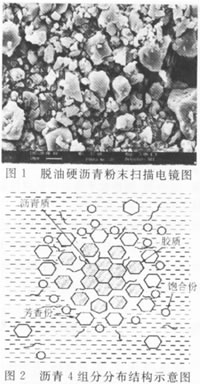 由于社會對石油輕組分的巨大需求和加工工藝的需要,重質油經(jīng)深度脫油,得到盡可能多的輕組分原料以后,余下的硬瀝青成為煉油過程中一種產(chǎn)量不小的副產(chǎn)品。硬瀝青常溫下為硬而脆的固體或粉末(見圖1),外觀為黑、褐色,類似煤,密度約1.1g/cm3左右,分子量為數(shù)千到1萬不等,沒有同定的熔點,軟化點在120℃以上,含碳量在80%以上,灰份很低,高溫下為粘稠狀半流體。由于硬瀝青的力學性能不佳,所以很少直接單獨作為體相材料來使用,以往的硬瀝青大多被做煉焦原料,造氣發(fā)電原料,或鋼鐵工業(yè)高爐燃料等低附加值的場合。也有人將它制備成瀝青水漿作為燃料油的替代品?紤]到硬瀝青組分本身的化學特性以及資源和價格優(yōu)勢,如果添加于合適的高分子材料及相關產(chǎn)品,該類材料還是有可能在高分子添加材料中占有一席之地的。美國已有類似的原料作為高分子添加材料的專用商品出售,我國目前這方面的工作才剛剛開展。 日前報道的將瀝青材料用于高分子材料添加改件的不多,主要有橡膠制品中加入的橡膠瀝青。作為軟化、增強和填充劑用,使橡膠提高其加工性能,由于加入瀝青使橡膠變黑,一般用做輪胎、鞋底材料。但橡膠瀝青不是高軟化點的硬瀝青,而是含有油份的專用瀝青。目前使用硬瀝青材料的還有與聚氨酯、環(huán)氧樹脂等其它高分子材料調(diào)成瀝青油漆或涂料,這只是傳統(tǒng)產(chǎn)業(yè)瀝青漆的延伸。最初人們研究的硬瀝青是一種瀝青巖類的天然產(chǎn)物,了解它性能的人不多,隨著煉油工業(yè)中硬瀝青的產(chǎn)量越來越大,有必要將其物化特性作一介紹,使更多的人了解它,并能在高分子制料領域中積極地將它加以開發(fā)利用。 2、化學成分 目前我國煉油工業(yè)中產(chǎn)生的硬瀝青數(shù)量以萬噸計,表1示出我國生產(chǎn)的兩種典型硬瀝青性能指標。 硬瀝青的組成主要由煉油廠加工使用的原油性能決定。除硫含量外各組分的變動應該不大。硬瀝青主要由膠質、瀝青質構成,油份含量一般在5%以下。 表1 兩種典型的硬瀝青性能指標