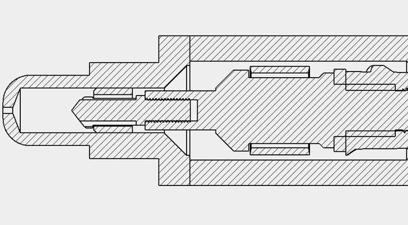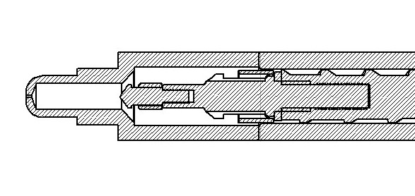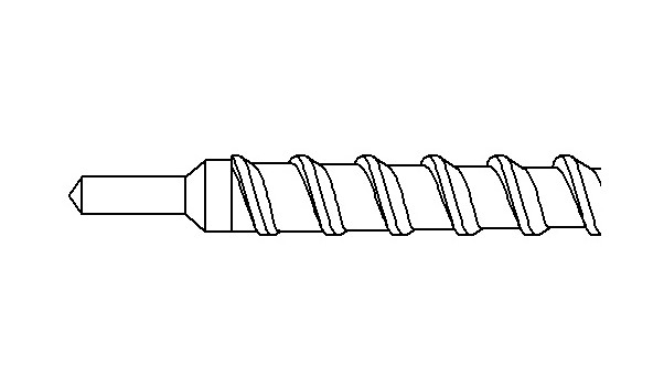 圖4 母料筒后端加大作為回料槽 圖5 回在前料筒在(可以是一個(gè)也可以是多個(gè)) 圖6 無止逆環(huán)(適合PVC等) 圖7 三級螺桿(注射螺桿和加料螺桿分開)